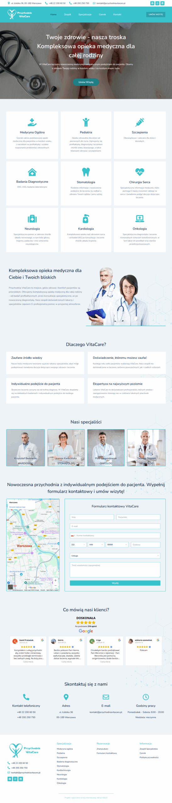 Strona internetowa przychodni medycznej z intuicyjnym podziałem usług i wygodnym kontaktem dla pacjentów.